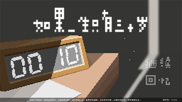 《如果一生只有三十岁》是一款像素风格的治愈系剧情角色扮演游戏,它凭借动人的叙事与沉浸式的剧情设计,引领玩家踏上一段交织着深度思考与细腻情感的独特旅程。游戏围绕一位意外得知生命即将走向尽头的年轻人展开,玩家的核心任务是协助主角在这短暂的时光里,用心去感受和珍惜每一个瞬间。当人生进入最后的倒计时,玩家将全程陪伴主角面对一系列关键的人生抉择——这些选择不仅会左右他的人生走向,更将最终决定故事的结局。