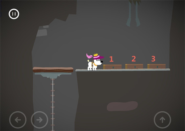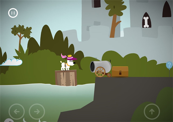 1、玩家需要帮助可爱的小白狗米皮勇敢前行,抵达各个关卡中的终点。