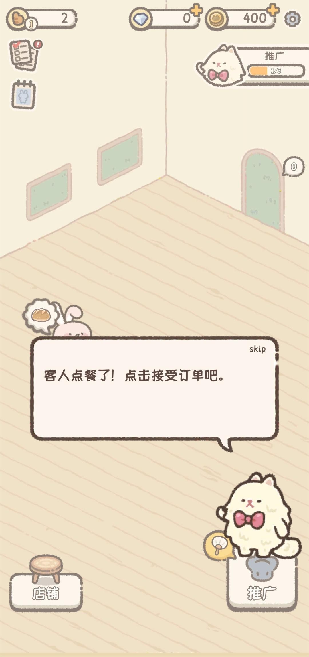 1、当顾客来到喵喵甜品店时,头上会出现气泡,点击气泡就可接受订单。