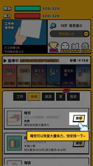 5、玩家还需要为主角安排睡眠时间,恢复大量的体力值。