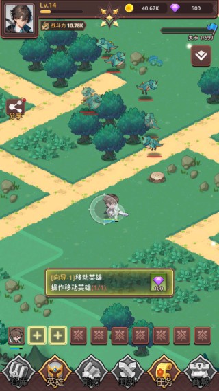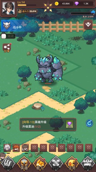 5、点击下方功能栏里的“英雄”选项,就能进入英雄培养页面,从而提升角色的能力值。