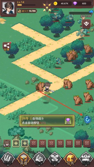 2、当遇到敌人时,点击右下角的自动战斗按钮就能启动自动战斗模式。