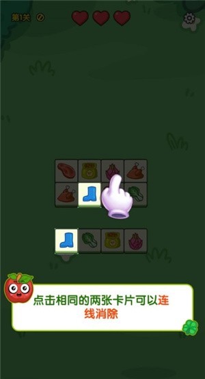 1、点击两张相同的卡片,即可完成连线,进而消除它们。