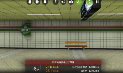 根据屏幕指示操作列车,调整速度保持平稳行驶。
