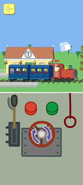 7、点击乘客可使其进入火车,点击火车门即可关闭车门,点击绿色按钮就能启动火车;顺时针转动转盘可使火车加速,转动转盘则能让火车减速。