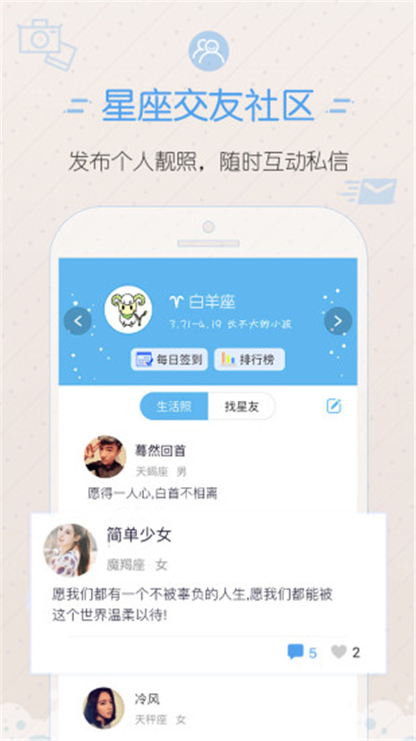 1、新鲜好玩的星座,查看专属运势,提供超全测试。