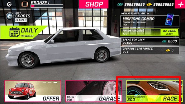 选择底部赛事,领取奖励,点击[RACE]进入比赛。
