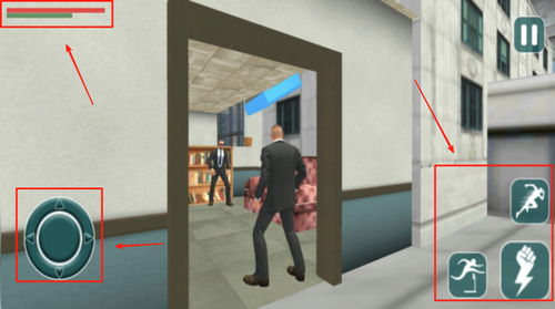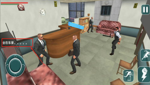 2、左侧是控制移动按钮,右侧设有射击与切换武器功能,界面下方显示当前任务进度与装备状态。