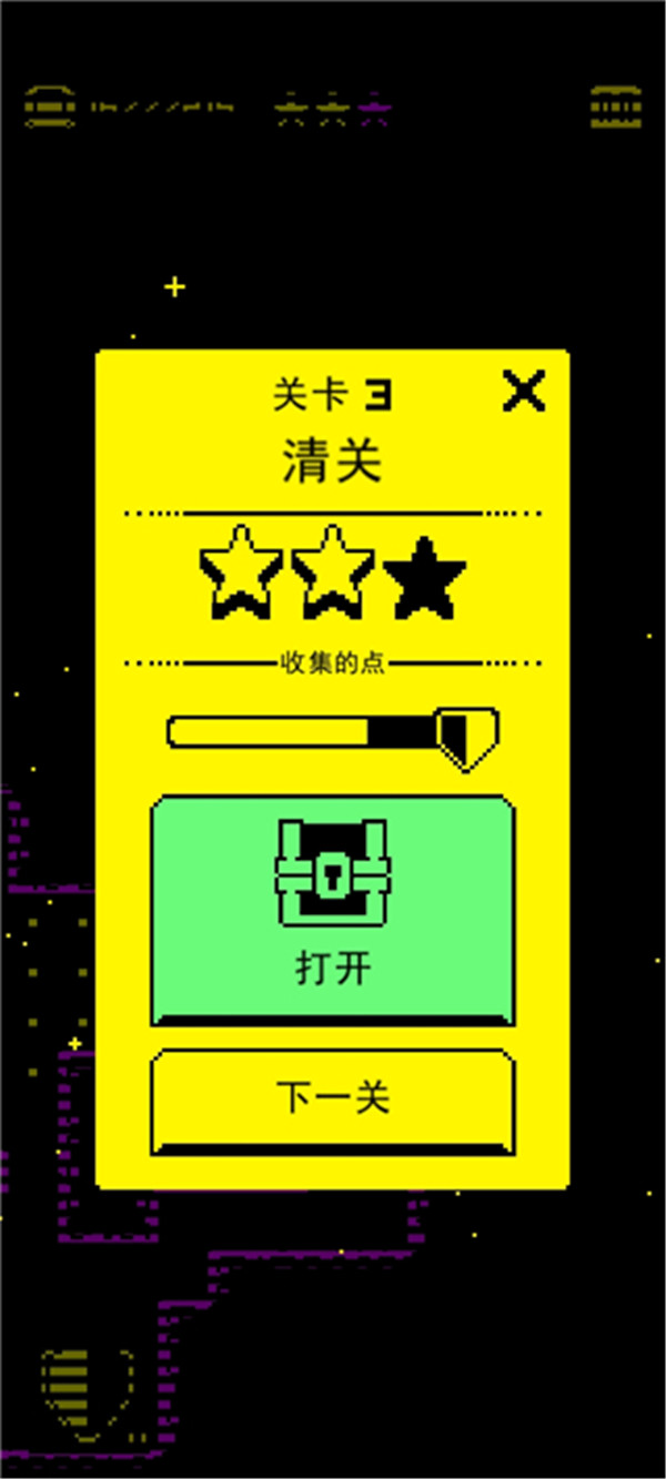 3、三颗星星代表闯关星数,关卡完成度越高,就能获得三颗星。