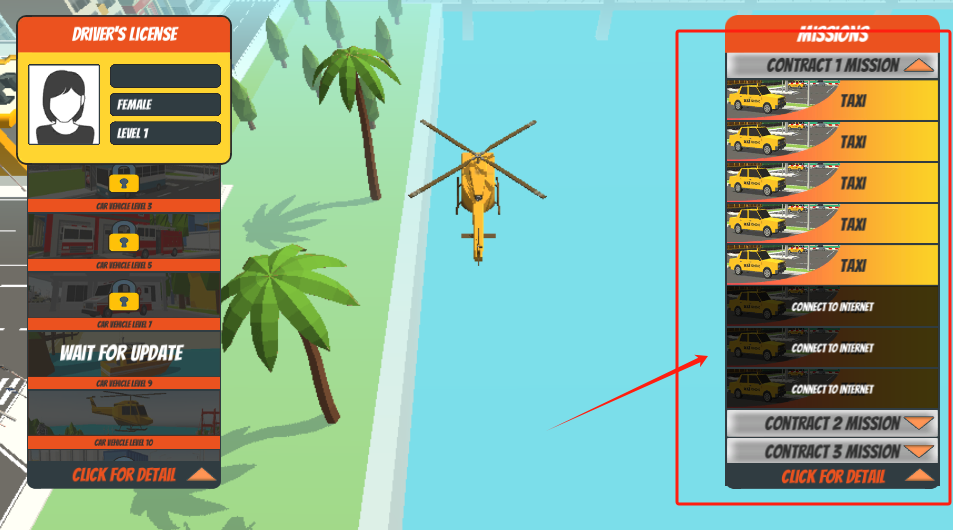1、点击“CLICK FOR DETAIL”查看任务详情,挑选一个出租车任务开始接待乘客。