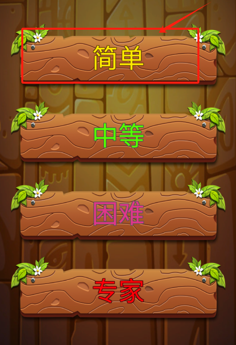1、看到红色箭头指向简易木板,点击它就能选择最基础的游戏难度开始游玩啦。