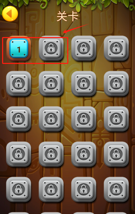 2、点击黄色箭头按钮即可进入关卡选择界面,标有数字1的方块代表已解锁的首个关卡。