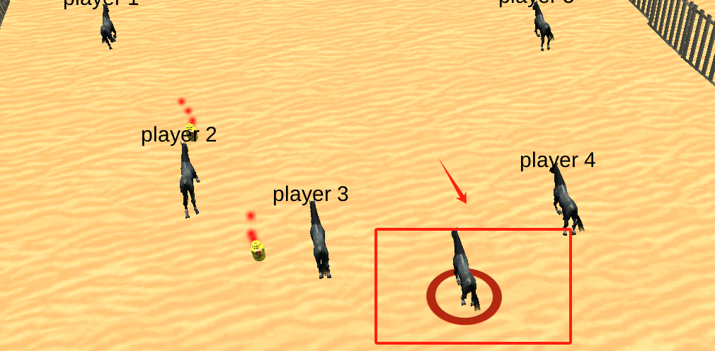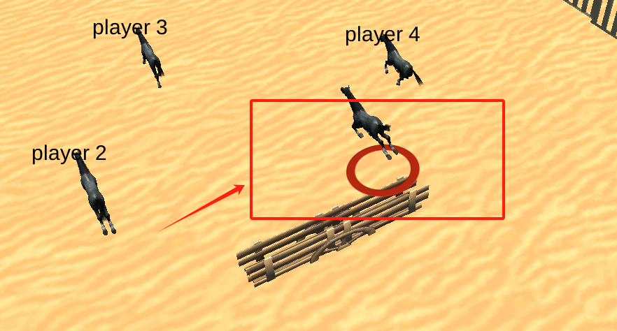 2、四匹马正在进行赛跑,大家要留意带有红圈标识的player 4所在的位置,抓紧点击加速按钮,争取超过它。
