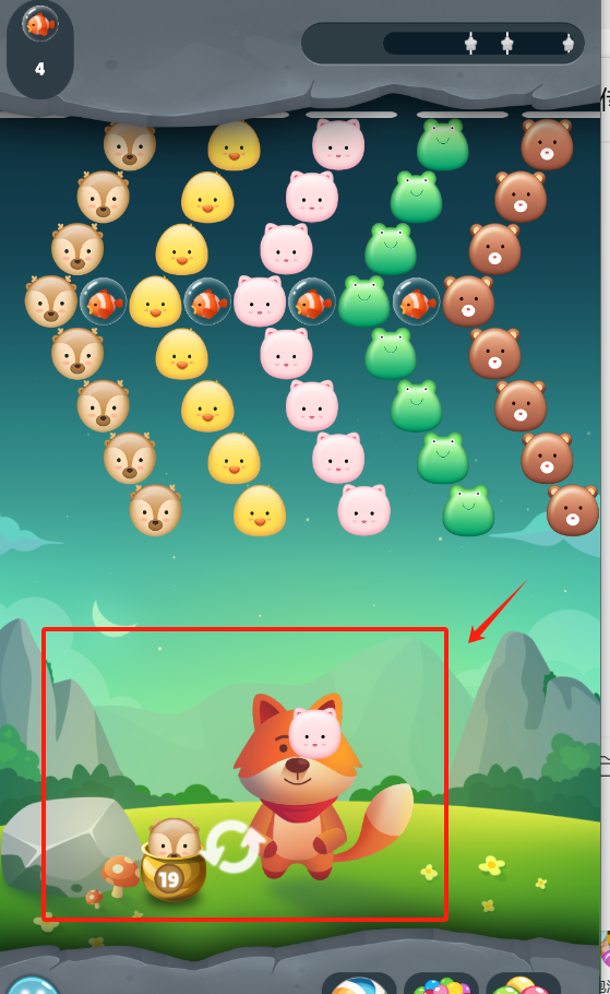 3、瞧红框里戴猫头套的狐狸,点它或数字19的小动物,触发游戏互动环节。