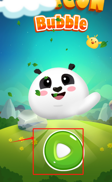 1、点绿色开始按钮,就能进入游戏,和熊猫一起开始泡泡龙冒险啦。