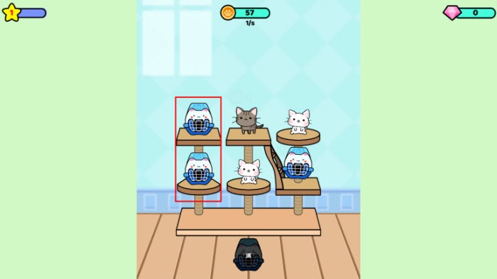3、把两只同品种的猫咪拖到一块儿,它们就会自动合成更高等级的猫咪。像白猫能合成灰猫,灰猫能进阶成花猫,解锁的猫咪品种越多,能拿到的奖励就越丰富!