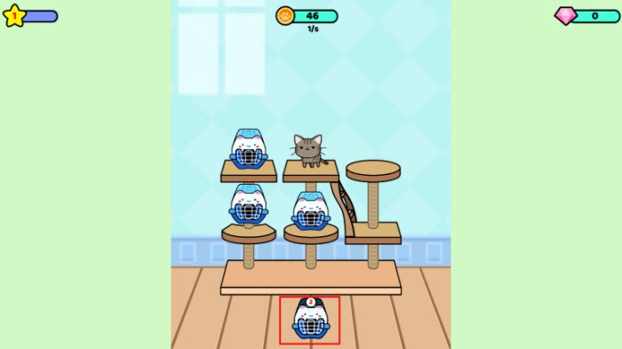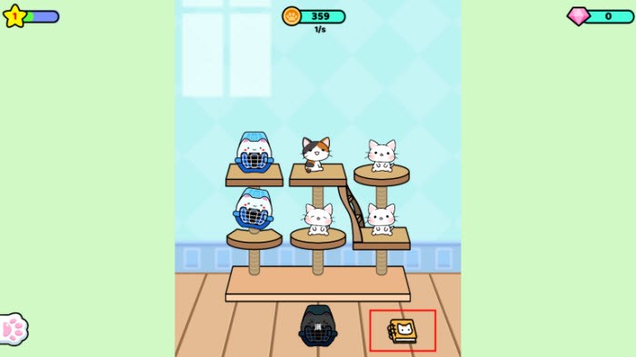 进入游戏后,映入眼帘的是一个架子和若干猫笼。这些猫笼会按照倒计时自动生成新的猫咪,等待时长较短,玩家能够轻松惬意地饲养猫咪,无需耗费太多精力。