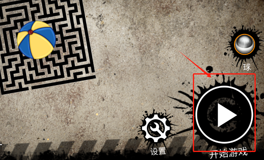 1、红框里的黑色开始游戏按钮亮着,直接用手指戳它,就能进入彩色小球的迷宫关卡啦。
