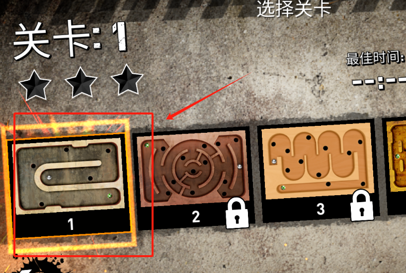 2、红框圈住的关卡1图标在发光,直接点这个带火焰的图标,就能开始玩第一个迷宫关卡了。