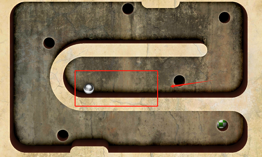 3、红框标出的银色小球在轨道里,用手指滑动屏幕控制小球滚动,让它顺利通过迷宫轨道吧。