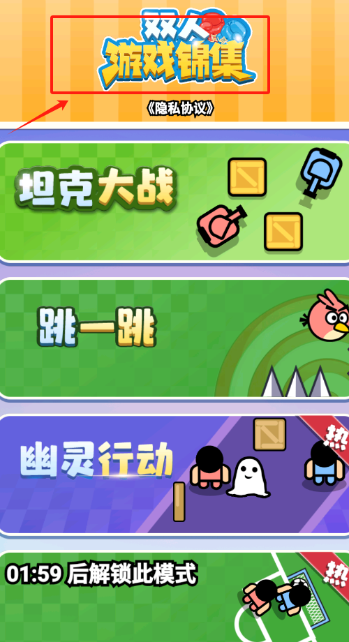 1、选择双人游戏集锦里的游戏,等倒计时结束后,就能玩坦克大战等三种趣味对战游戏了。
