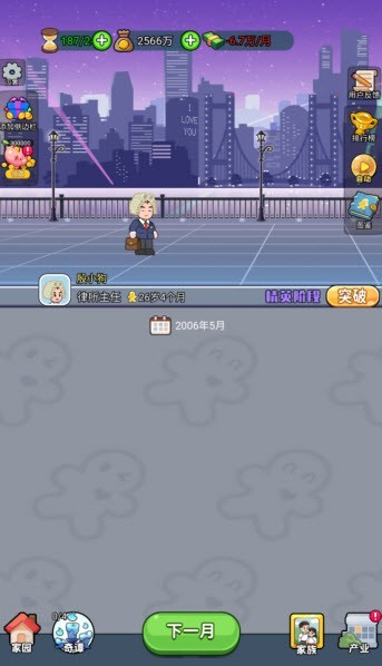 2、进入游戏主界面后,点击对应下个月的图标,即可解锁全新的事件链,以此来推进剧情的发展。