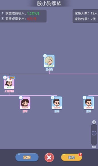 5、点击主界面右下方的家族按钮,可直观查看当前家族成员的分布情况以及家族地位的变动信息。