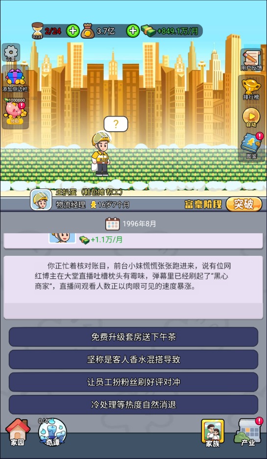 3、在面对形形色色的事件时,玩家能够自主做出丰富多样的决策,而每一个决策都将导向截然不同的发展方向,并产生不一样的影响。
