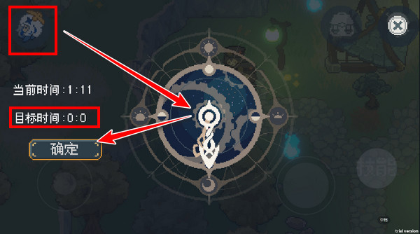 2、点击左上角像素风格的派蒙图标,即可调整游戏内的时间;游戏内不同的时间段,会对部分场景以及特定角色的出现产生影响。