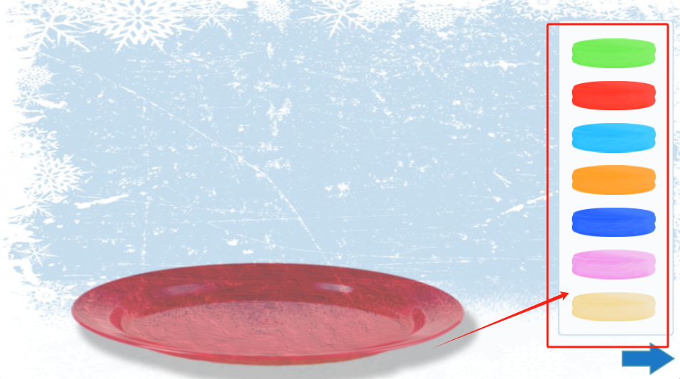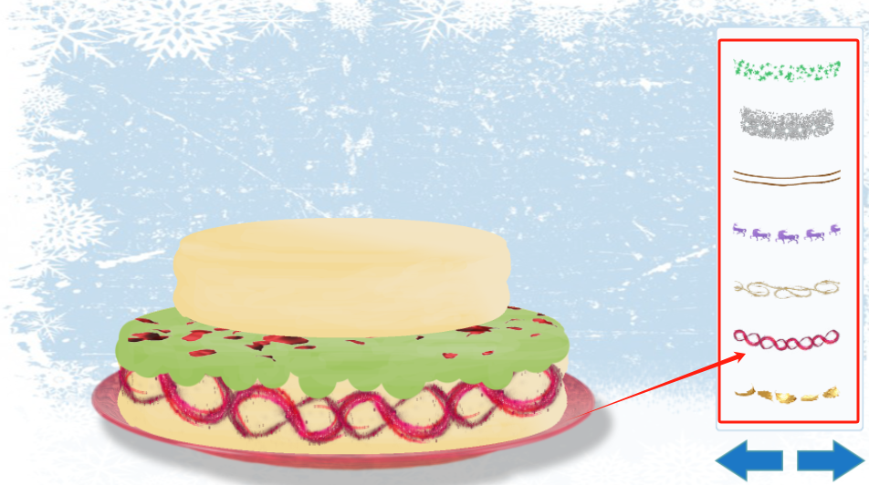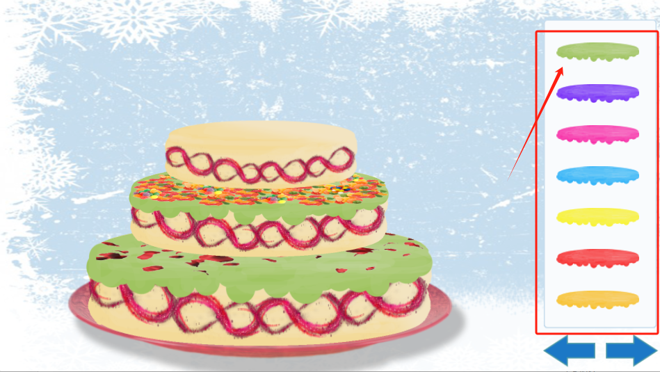 1、点右边的彩色圆片,选个喜欢的颜色装饰你的圣诞蛋糕。