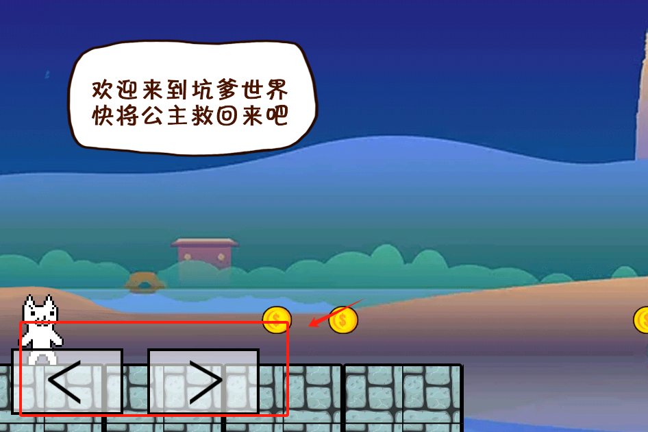 2、看到箭头按键就左右拨,控制小猫移动去捡金币,别让它掉下石砖哦。