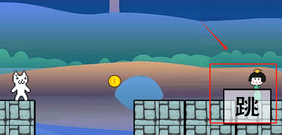 3、金币会在中间飘着,看到跳字马上点,让小人跳过去把金币拿到手。