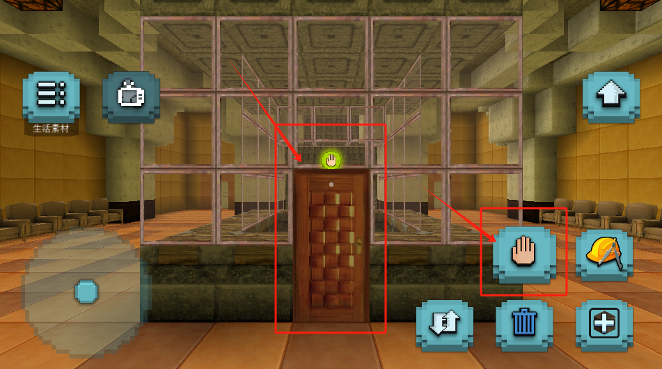 3、点击红框内的门形图标进入房间,左侧可打开生活素材菜单。