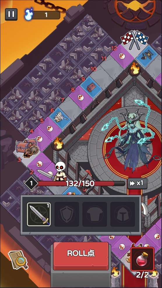 1、玩家通过掷骰子来决定前进步数,并进行战斗。