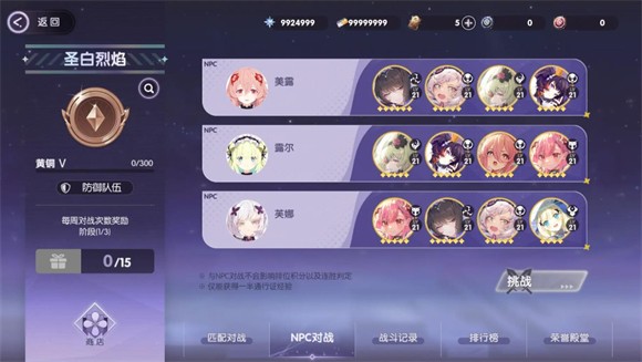 4、“镜界天梯”设有对战玩法,涵盖玩家间对战与NPC战斗两种模式。玩家对战前需提前设置防守阵容,出战的灵衣角色最多为四位,且不能指定队长或助战角色,阵容里必须至少安排一名角色。