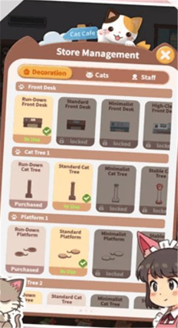 2、自由经营的玩法,能按照个人喜好打造专属猫咖,经营过程乐趣满满。