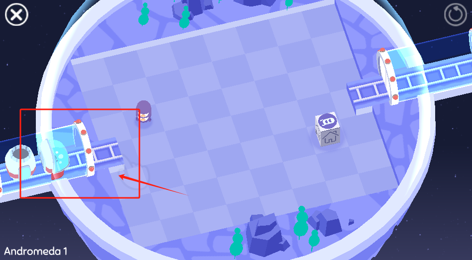 3、控制轨道上的小人走到终点,点X退出或刷新键重玩Andromeda 1关卡。
