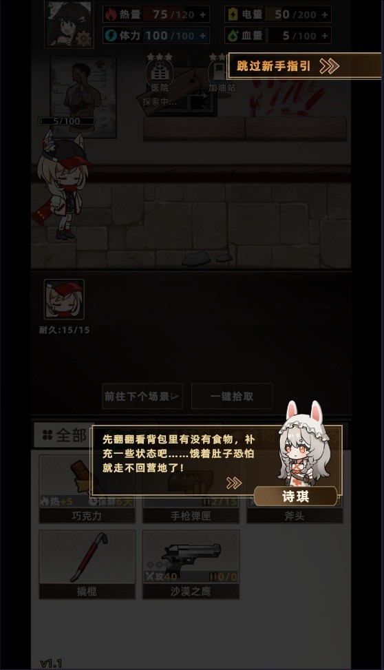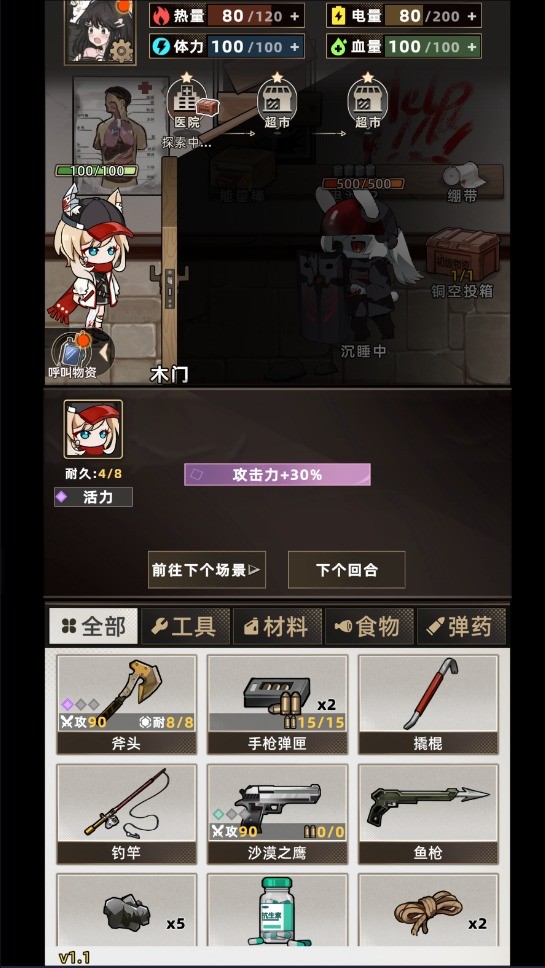 4、借助已有的素材来组装武器,采用回合制的形式与感染者进行战斗,将感染者驱逐出去。