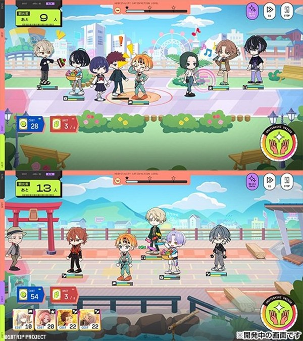 在游戏的【塔防风小游戏】招待观光客的【招待战】玩法中,将登场与实际存在的观光地相对应的地图,以及可爱的三头身迷你角色。当玩家完全通关后,便能使用AUTO模式自动机制轻松进行召回。