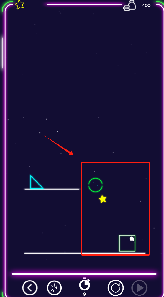3、观察深色界面上的红框绿圆圈,把它拖动到箭头所指的位置,就能完成当前关卡的这一步骤啦。