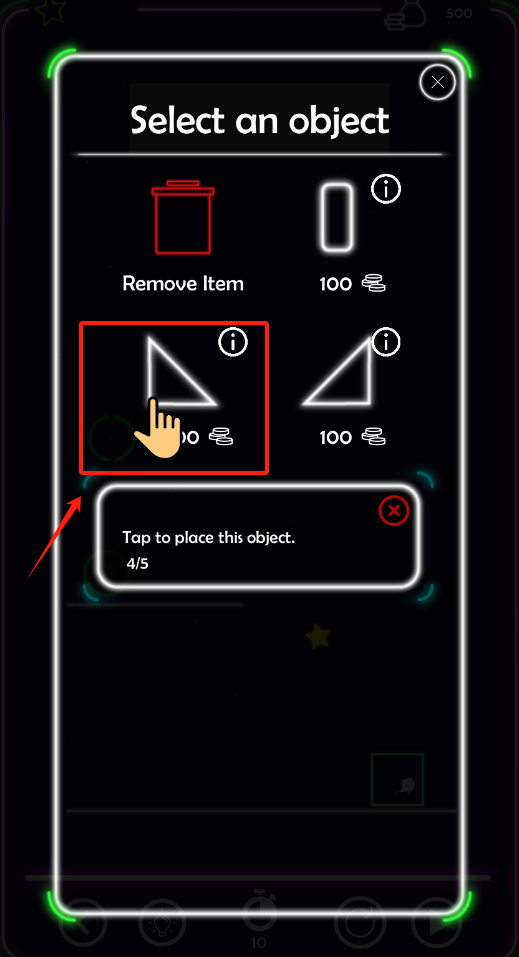 2、找到选物体界面上那个带白色三角的红框,点击这个红框后,再点击想要放置的位置,这样就能完成第4步的操作啦。