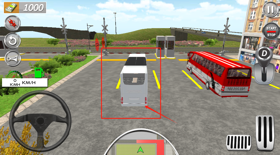 3、驾驶过程中,用左下角方向盘和右侧档杆操控巴士行驶。