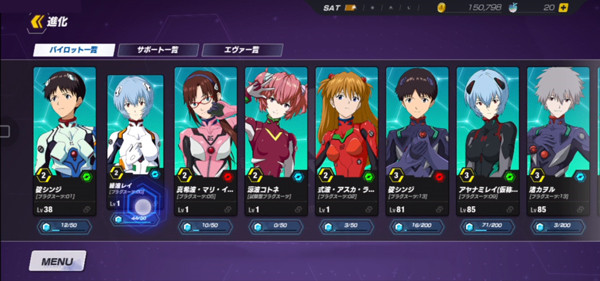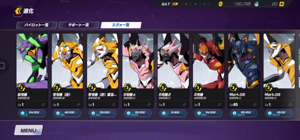 1、游戏快捷键位于左下角的MENU菜单中,包含大厅、队伍编辑、强化、进化、武器以及对话回溯等功能选项。