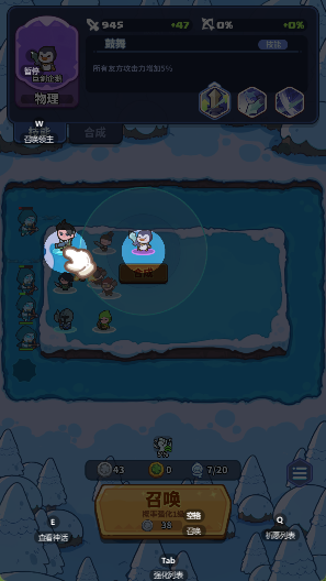 1.玩家进入到游戏之后需要召唤角色前去进行对战。