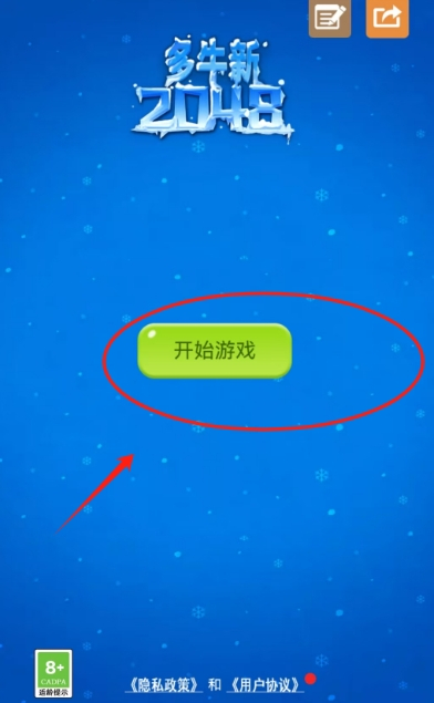 1点击启动按钮,通过滑动操作合并数字方块,挑战2048的最高纪录,也能分享给好友一同参与游戏。