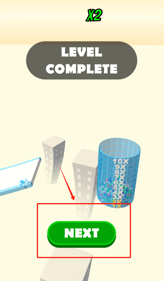 3、点底部绿色NEXT按钮,就能进入下一关,继续挑战更高分数。