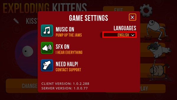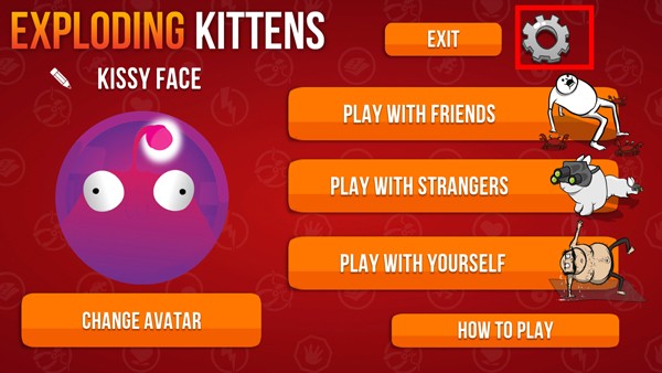 1、第一步先进入爆炸猫游戏大厅,接着在界面右上角找到那个齿轮形状的设置按钮;