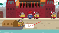 2、触发互动:点击“播放”按钮,即可推进剧情(比如乘船、和士兵角色对话等)。