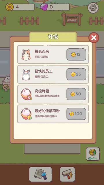 4、要是玩家觉得顾客来得太慢,不妨点击右下角的升级图标。
