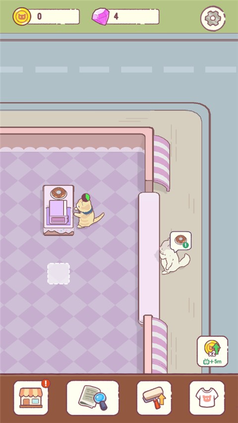 7、抵达甜品站后,保持相同的操作步骤,先用初始资金搭建新的甜甜圈工作台,接着持续进行升级,之后逐步扩张店铺就可以了。